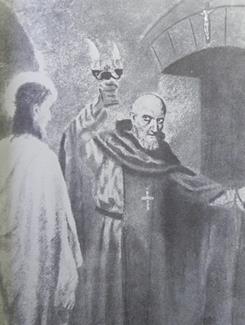 16世紀の中世のスペインに現れるも捕らえられ幽閉されて尋問を受けるイエス(※この絵のイエスの風情はよいですね)と獄へと導く大審問官